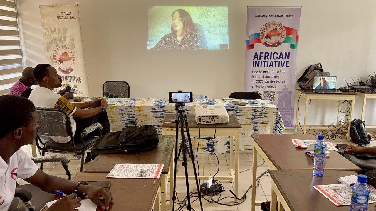 Natalie Ildyakova (Russie), l’association «Réputation Professionnelle», Novossibirsk, qui coanimait par visioconférence depuis la Russie, a invité les jeunes à prendre leurs responsabilités pour se libérer du néocolonialisme. Dans son intervention, elle a fait une comparaison entre la victoire de l’URSS lors de la Grande Guerre Patriotique, le combat de Thomas Sankara pour l’émancipation des peuples opprimés et les défis actuels des populations de l’Alliance des États du Sahel (AES).