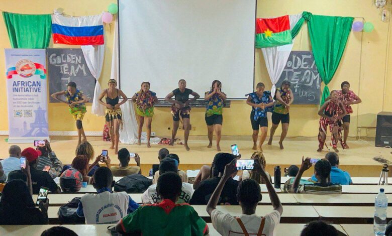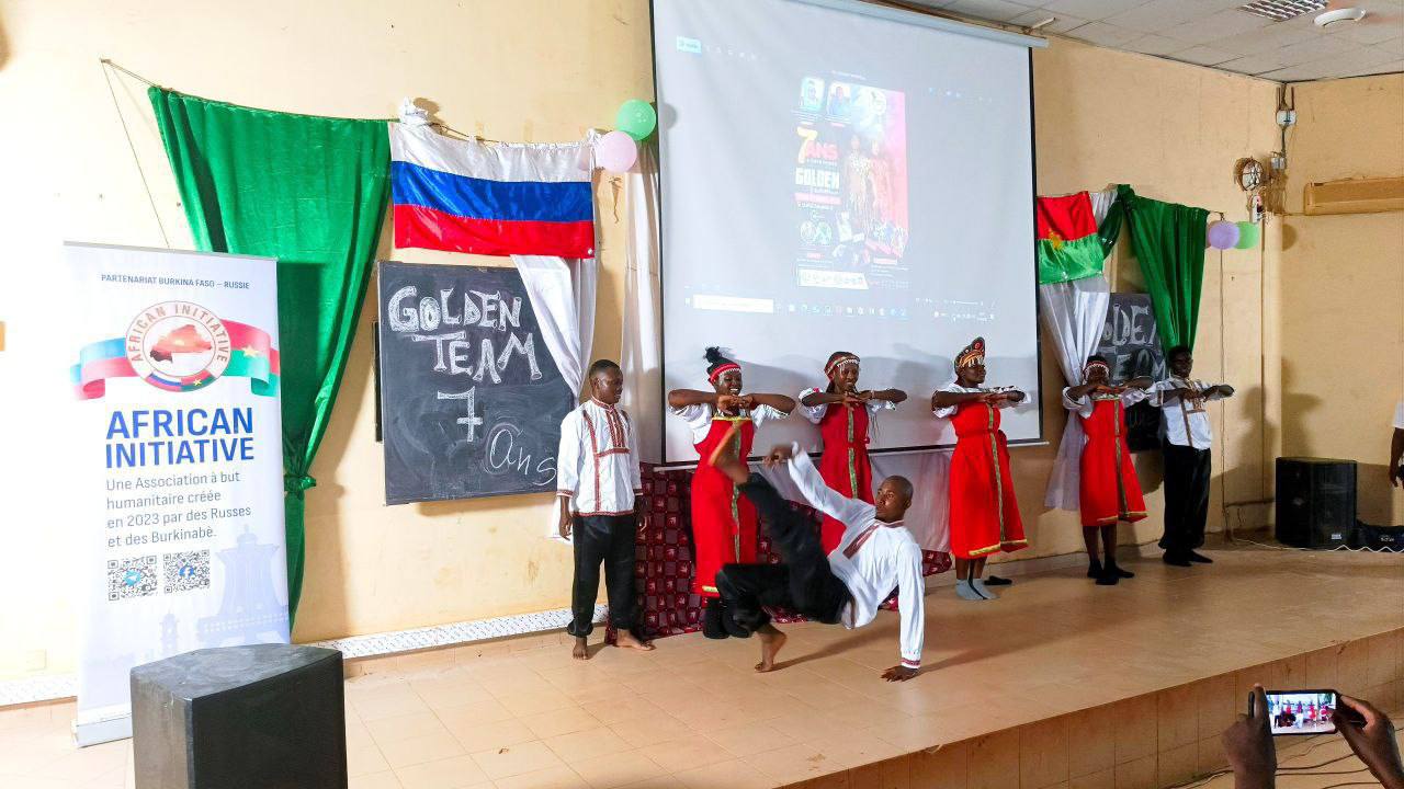 Golden Team a présenté plusieurs tableaux chorégraphiques notamment une chorégraphie inspirée sur une chanson traditionnelle russe. Les membres de Golden Team habillés en tenues traditionnelles de danseurs russes ont émerveillé les spectateurs de l’amphi « D » de l’Université Joseph Ki Zerbo. Un quiz a été également organisé en vue de permettre aux étudiants de bénéficier de casques gracieusement offerts par « African Initiative ».